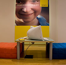 La risposta? Ce l'avete sotto i vostri occhi: due postazioni a loro "misura" dove è possibile giocare, scrivere, suonare, pastrocchiare con i colori e... mangiare le caramelle!